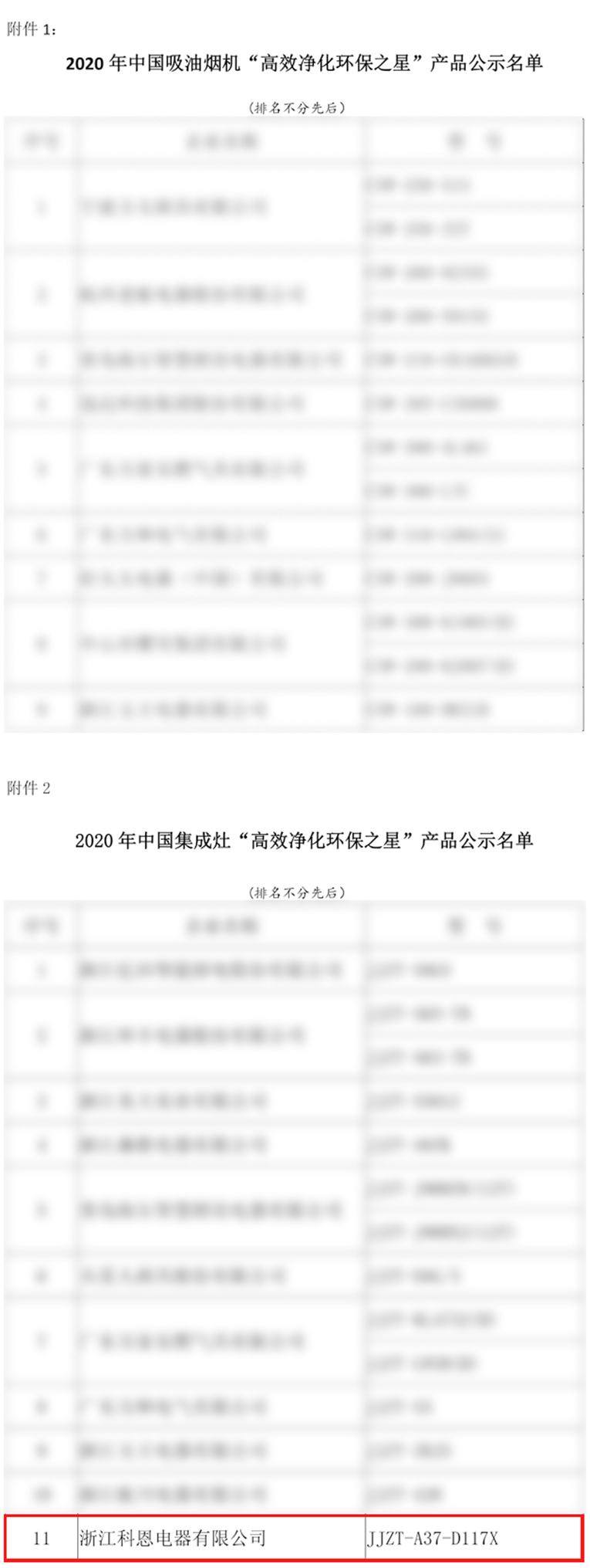 此次科恩集成灶JJZT-A37-D117X產品被授予“高效凈化環保之星”稱號,無不印證著廚電十大品牌集成灶十大品牌科恩電器不怕油煙的大吸力集成灶已然成為具有核心競爭力、節能效果好、社會認可度高的優秀產品。