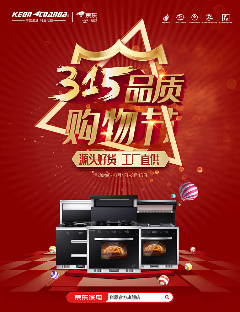 每年的315國際消費者權益日,不以商家為主宰,而以消費者為中心,不以商品為主導,而以質量說服大家!集成灶十大品牌、廚電行業十大品牌科恩電器專注廚電十余年,以匠心工藝、卓越品質著稱,值此315國際消費者權益日,科恩把這份特殊溫暖帶給廣大消費者,把最優惠價格和最有品質產品帶給全國用戶!科恩電器315品質購物節來襲,爆款好物限時開搶,確保源頭工廠直供,為您購買產品保駕護航!