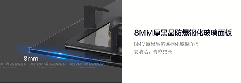集成灶十大品牌、廚電行業十大品牌科恩KN610智能防干燒灶具最大特點在于產品擁有防干燒技術,左爐頭帶防干燒裝置功能,意外忘記關火外出干燒時,將會自動關火;烹飪狀態下,溫控探頭檢測不到鍋具離鍋60S將自動熄火,有效杜絕了安全隱患。另外,KN610智能防干燒灶具采用8MM厚黑晶防爆鋼化玻璃面板,易清潔,壽命更長!