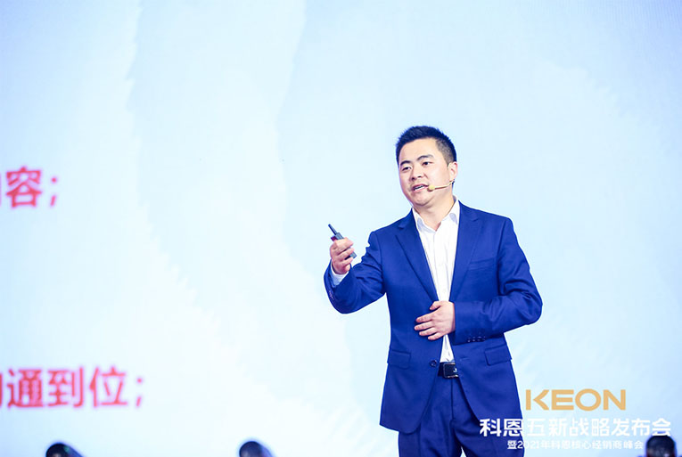 這一切成功的背后,除了有一支優(yōu)秀的鐵血團(tuán)隊(duì),還有各地經(jīng)銷商家人的支持陪伴,更重要的是有一位領(lǐng)航人不斷地探索。科恩電器董事長(zhǎng)俞鋒上臺(tái)致辭,宣布峰會(huì)正式開(kāi)始,“打造新科恩、重塑新科恩,再創(chuàng)科恩黃金十年”這一堅(jiān)定目標(biāo)和信念,伴隨洪亮的嗓音響徹全場(chǎng)。