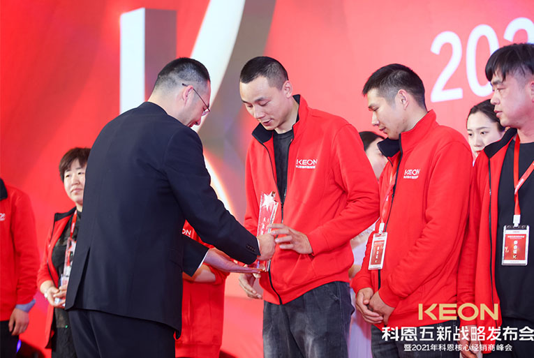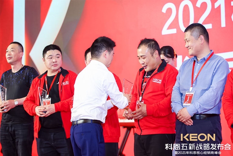 科恩電器一路披荊斬棘,成功實(shí)現(xiàn)了一輪又一輪銷量的突破,這一切的成果都離不開(kāi)終端經(jīng)銷商的努力與付出。晚宴現(xiàn)場(chǎng)對(duì)科恩電器優(yōu)秀經(jīng)銷商進(jìn)行了表彰獎(jiǎng)勵(lì),頒發(fā)了2020年度科恩電器優(yōu)秀專賣店、2020年度科恩電器優(yōu)秀經(jīng)銷商、2020年度科恩電器杰出經(jīng)銷商、2020年度科恩電器卓越經(jīng)銷商、2020年度科恩電器功勛經(jīng)銷商等在內(nèi)的多項(xiàng)大獎(jiǎng),公司高管上臺(tái)授予榮譽(yù)。