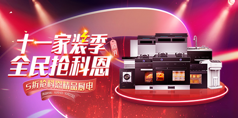 10月20日19:00鎖定科恩直播間,十一家裝季全民搶科恩,10月19日前購買科恩廚電用戶均可參與抽獎,千萬壕禮免費抽取準時開搶!!