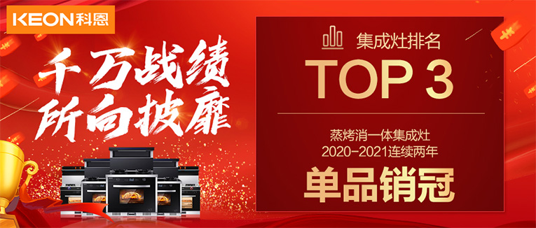 單品銷量第一!十大品牌科恩連續2年蒸烤消一體集成灶榮獲銷冠!