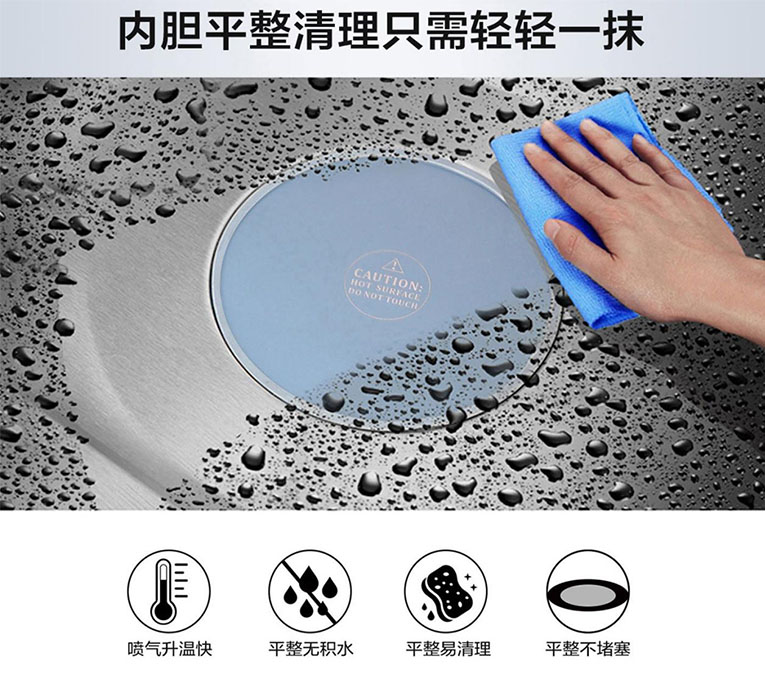 科恩蒸烤消一體集成灶能蒸善烤,值得一體的是該系列產品采用“薩萊米”進口陶瓷加熱,跟普通集成灶不同的是,傳統蒸盤不易清潔、易堵塞,在蒸制過程中排水孔容易堵塞導致故障,而陶瓷加熱盤噴氣升溫快、平整無積水、易清理、不堵塞,內膽只需輕輕一抹就能潔凈。
