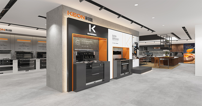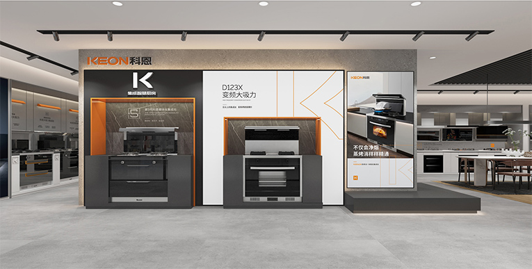 終端形象作為品牌的“臉面”,承載著企業(yè)形象的大部分內(nèi)容,終端的視覺環(huán)境、空間、陳列環(huán)境都能直接影響到消費(fèi)者對于其品牌形象價(jià)值的認(rèn)知,科恩集成灶建立全新的視覺形象,是其品牌發(fā)展中的重要一步,也為其與消費(fèi)者更加深層的溝通建立了橋梁。