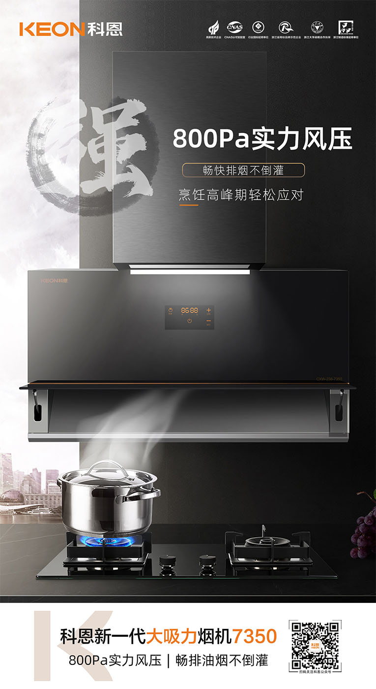 樂享智慧廚房,開啟美好食光~十大品牌科恩新一代大吸力煙機7350驚艷登場!