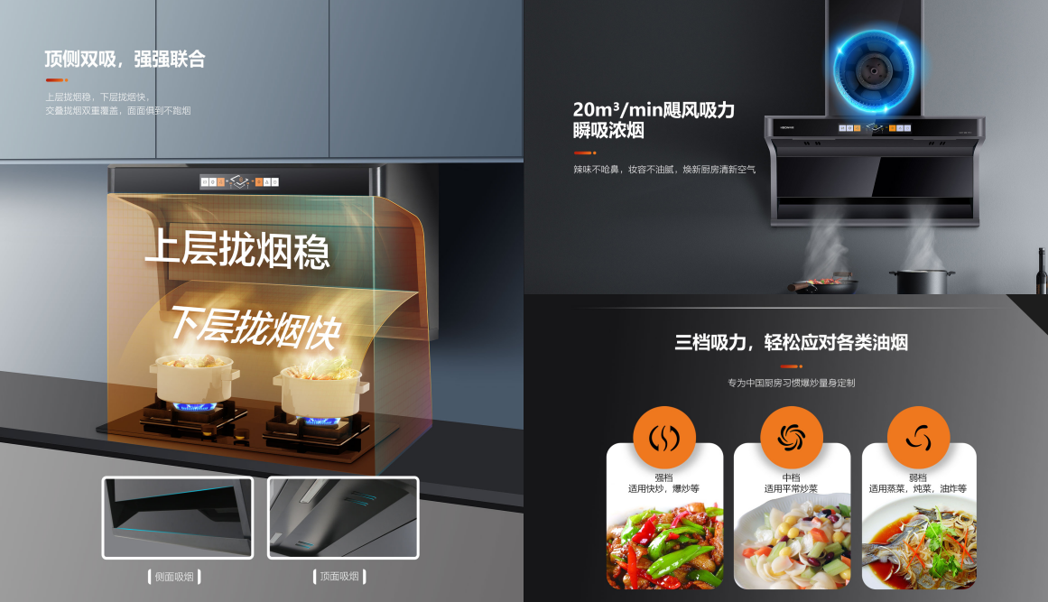 頂側(cè)雙吸、外觀出眾、性能一流!一款優(yōu)秀的煙機(jī),不僅能夠輕松解決廚房油煙問(wèn)題,更能把生活里的詩(shī)和遠(yuǎn)方裝點(diǎn)進(jìn)沉悶廚房,揉入三餐四季,烹出心生歡喜!