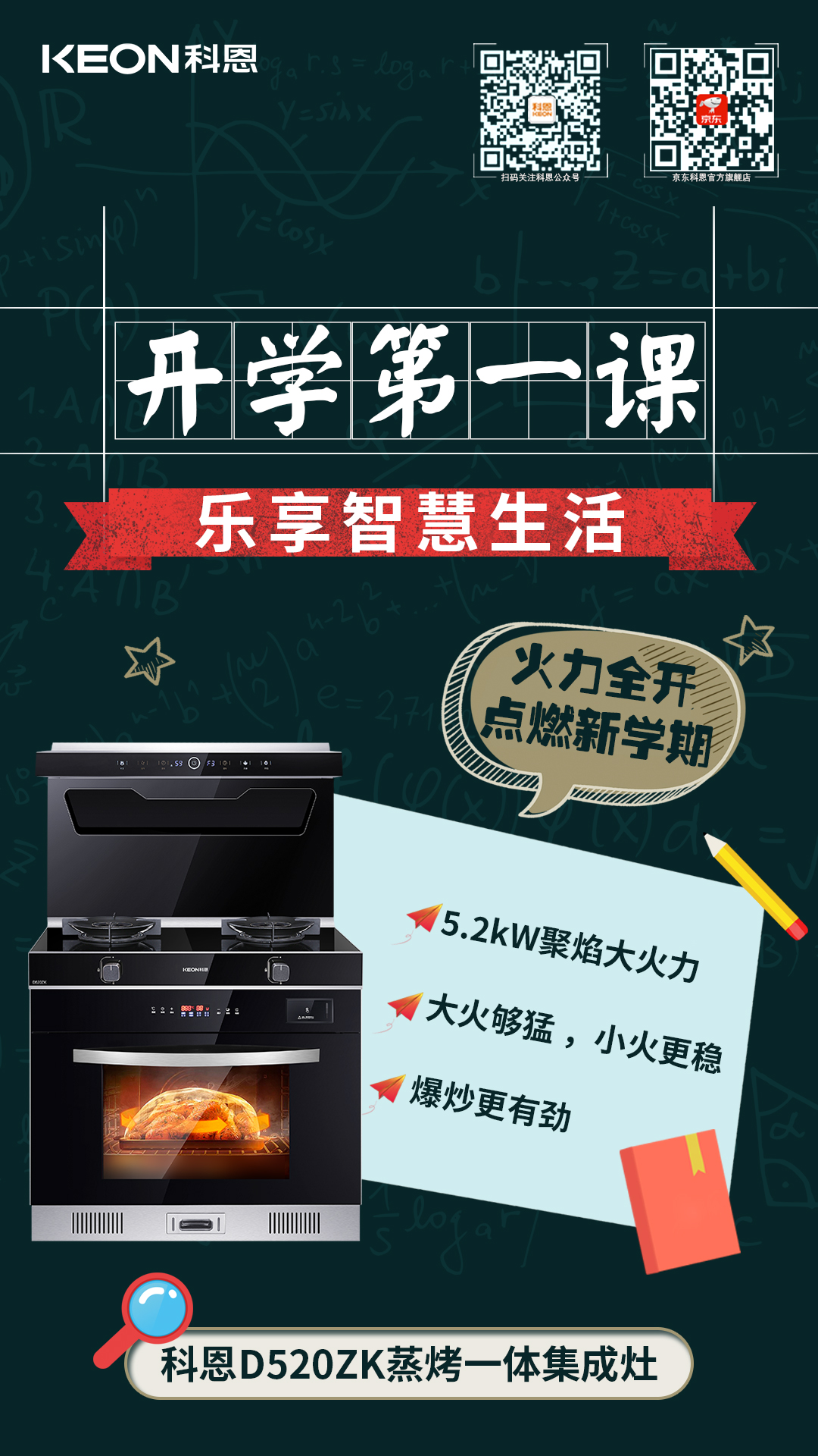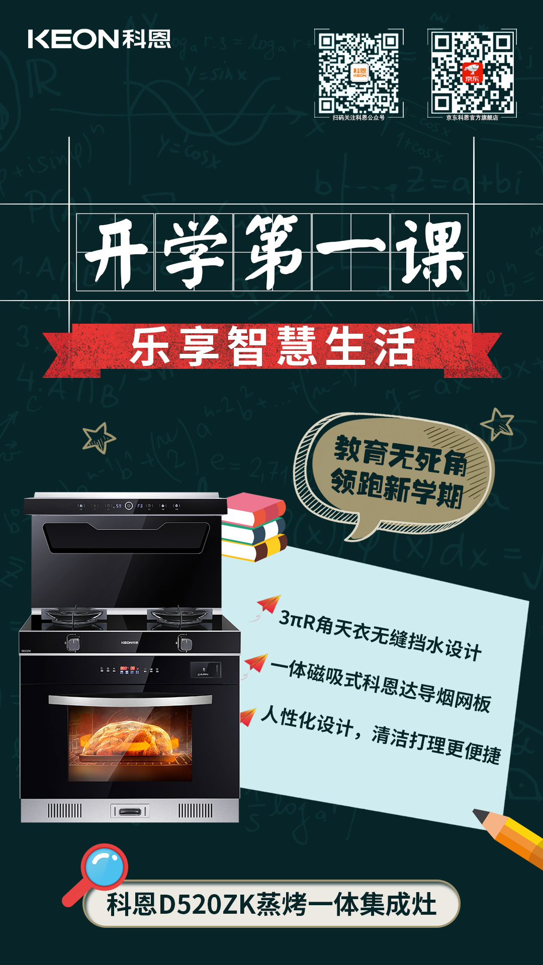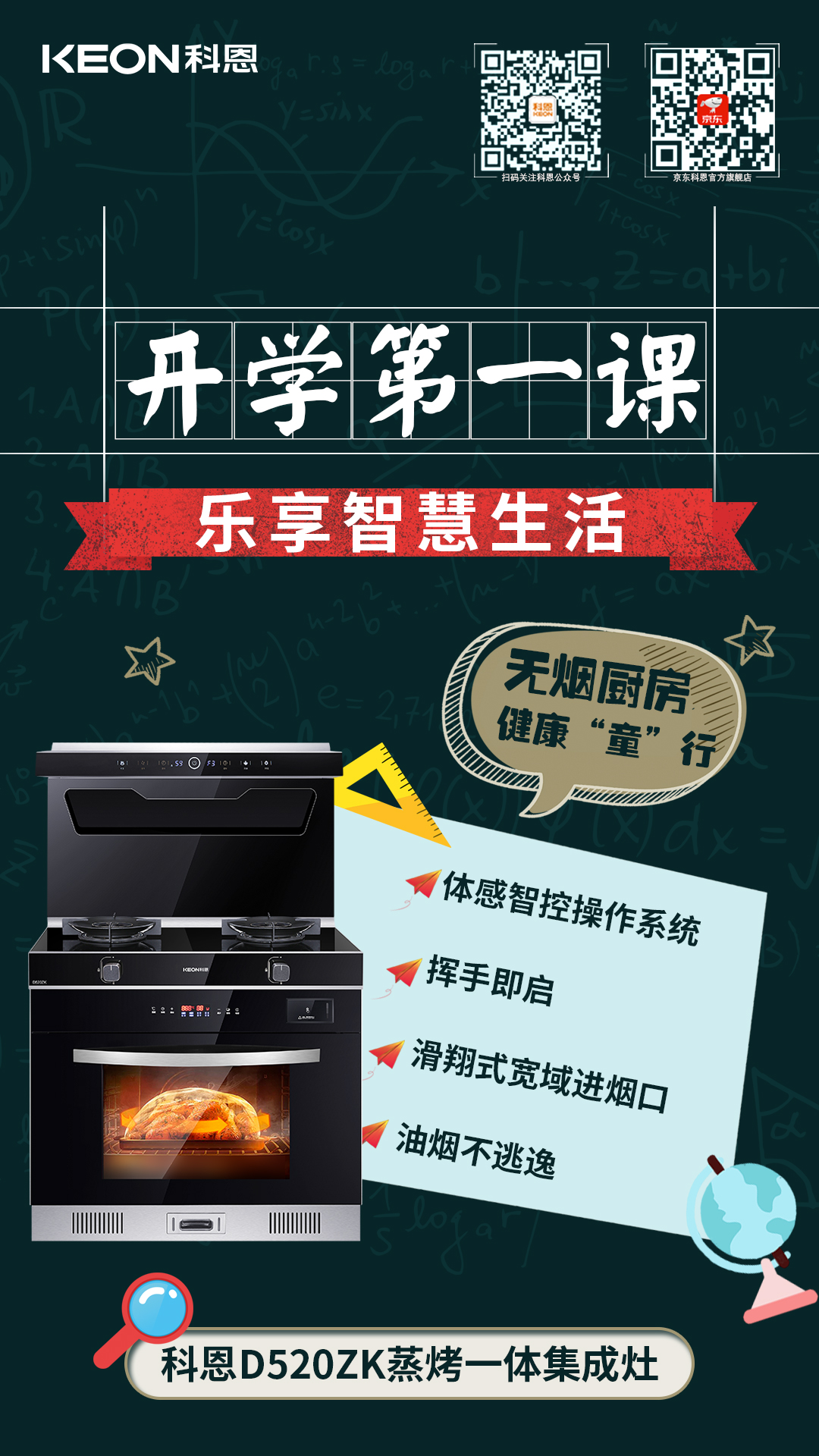 開學(xué)季!打開高質(zhì)量開局,迎接新的挑戰(zhàn),為孩子筑牢健康防線,為開學(xué)貼心護航,科恩集成灶陪你一起沖!