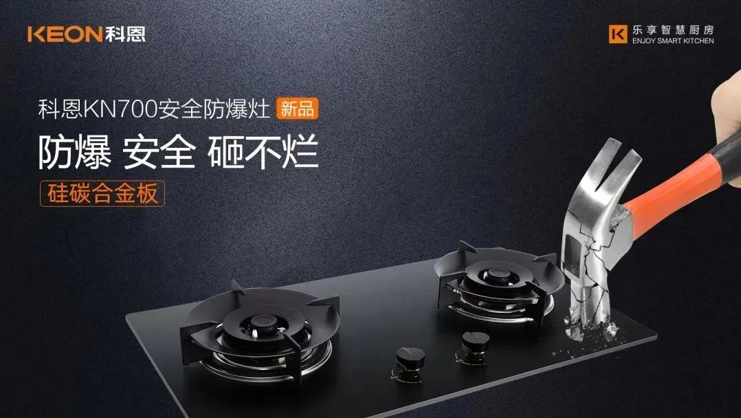 燃氣灶爆炸事故頻頻發生,究其根本就是因為防爆不過關。玻璃鋼化一般標準在700(鋼化溫度)以上,也就是說拿1.8公斤重的重物高度下自由落體,這個玻璃不能碎裂,這才算是合格的鋼化玻璃。即使達到國家標準的鋼化玻璃面板也存在3‰的自爆率。科恩金剛防爆灶的誕生正是為了解決這個難題。科恩采用了超細晶、高均質新型硅碳合金板!更堅可不摧 ,可耐高溫1500℃!真正做到防爆、安全、砸不爛!無懼各種極限考驗!