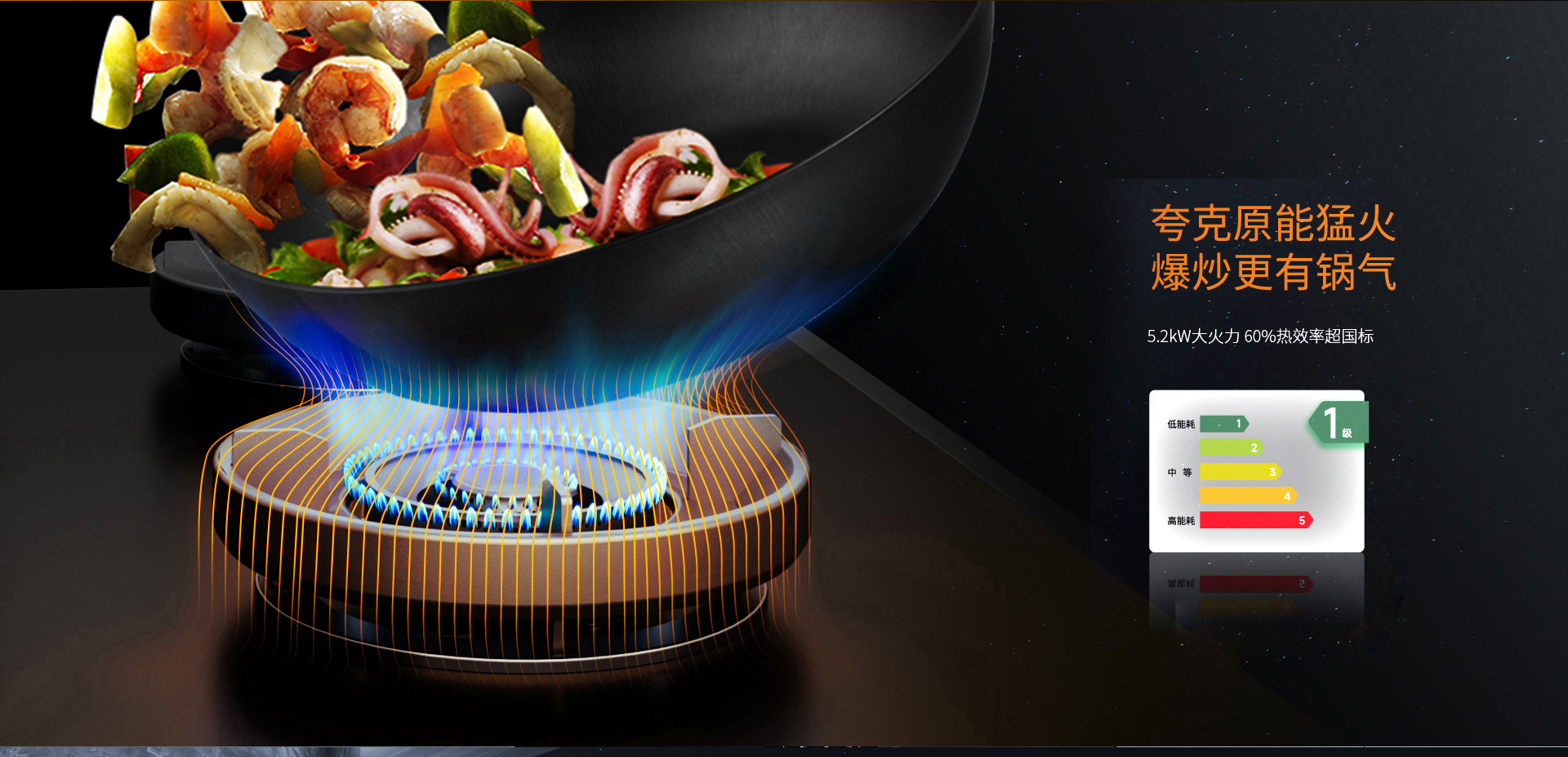 科恩防爆免清洗集成灶采用夸克能原猛火,爆炒更有鍋氣。G系列標(biāo)配5.2KW大火力,更適宜爆炒,更符合中國(guó)人烹飪需求。