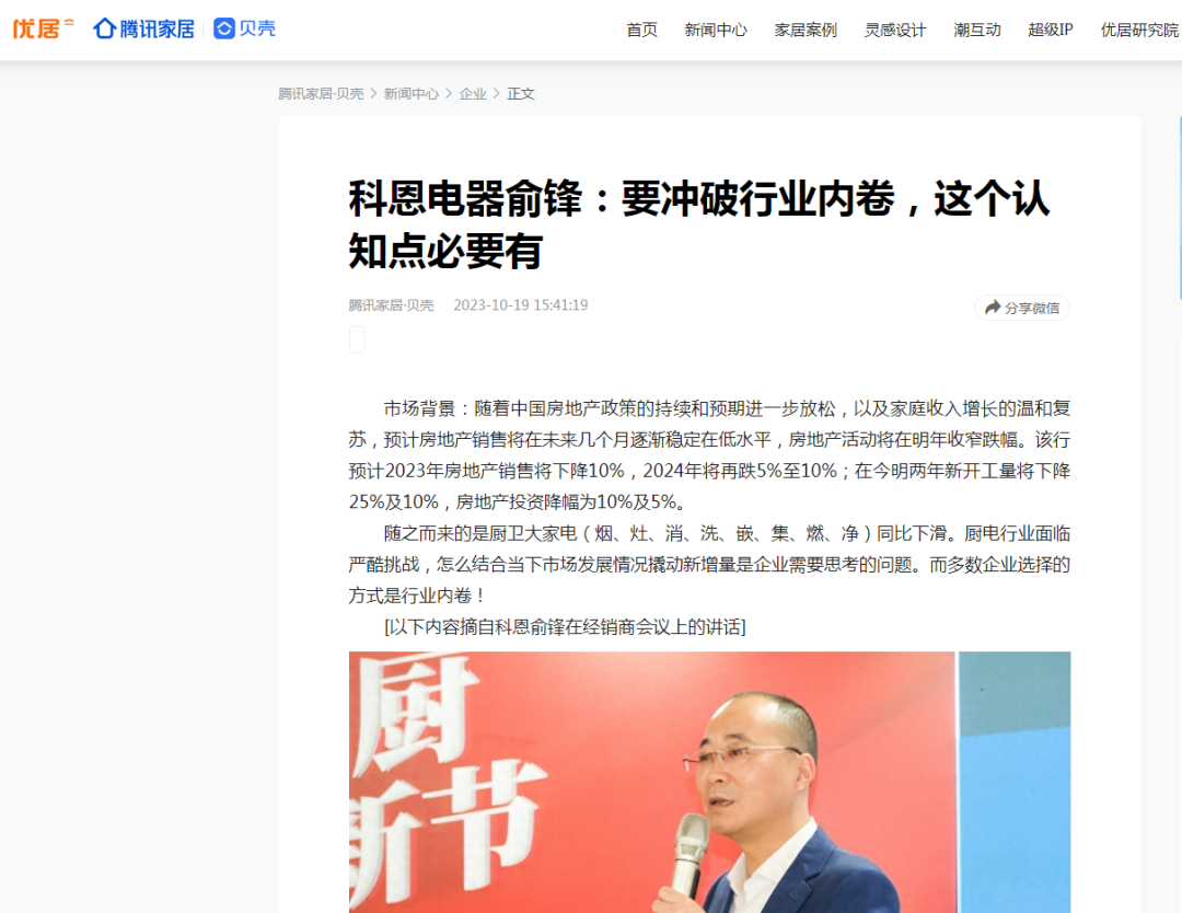 市場內(nèi)卷有兩個比較明顯的標(biāo)記,一個標(biāo)記就是價格被不斷揭穿底線;另外一個標(biāo)記就是增量客戶不斷消失,大家都開始去做存量市場。這兩個標(biāo)記在廚電行業(yè)已經(jīng)很明顯。