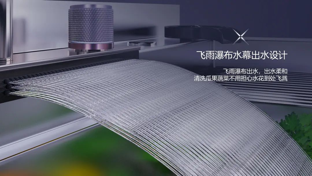 瀑布水幕可沖刷蔬果縫隙內的污垢。同時,X6L還貼心配置了刀具位,內置清洗液,高壓洗杯器等便捷清洗設置。