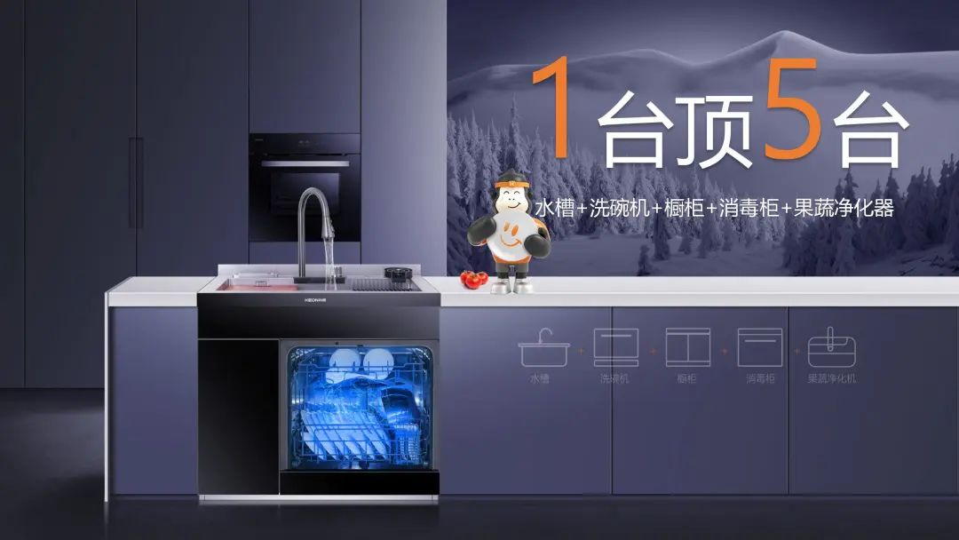 1.X6L將水槽、洗碗機(jī)、果蔬凈化器、消毒柜、櫥柜融為一體,足矣解決廚房所有清洗難題。