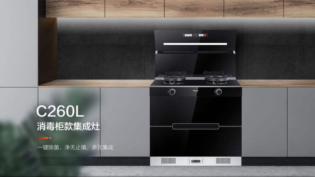 不得不說,這個時候一個家用消毒柜就十分有必要!但廚房空間有限,廚房電器頗多,著實(shí)沒有空間容納這么大的電器了。如何解決這個難題??贫?/span>C260L消毒柜款集成灶,一臺頂多臺,且國標(biāo)二星消毒,能消殺更多細(xì)菌。