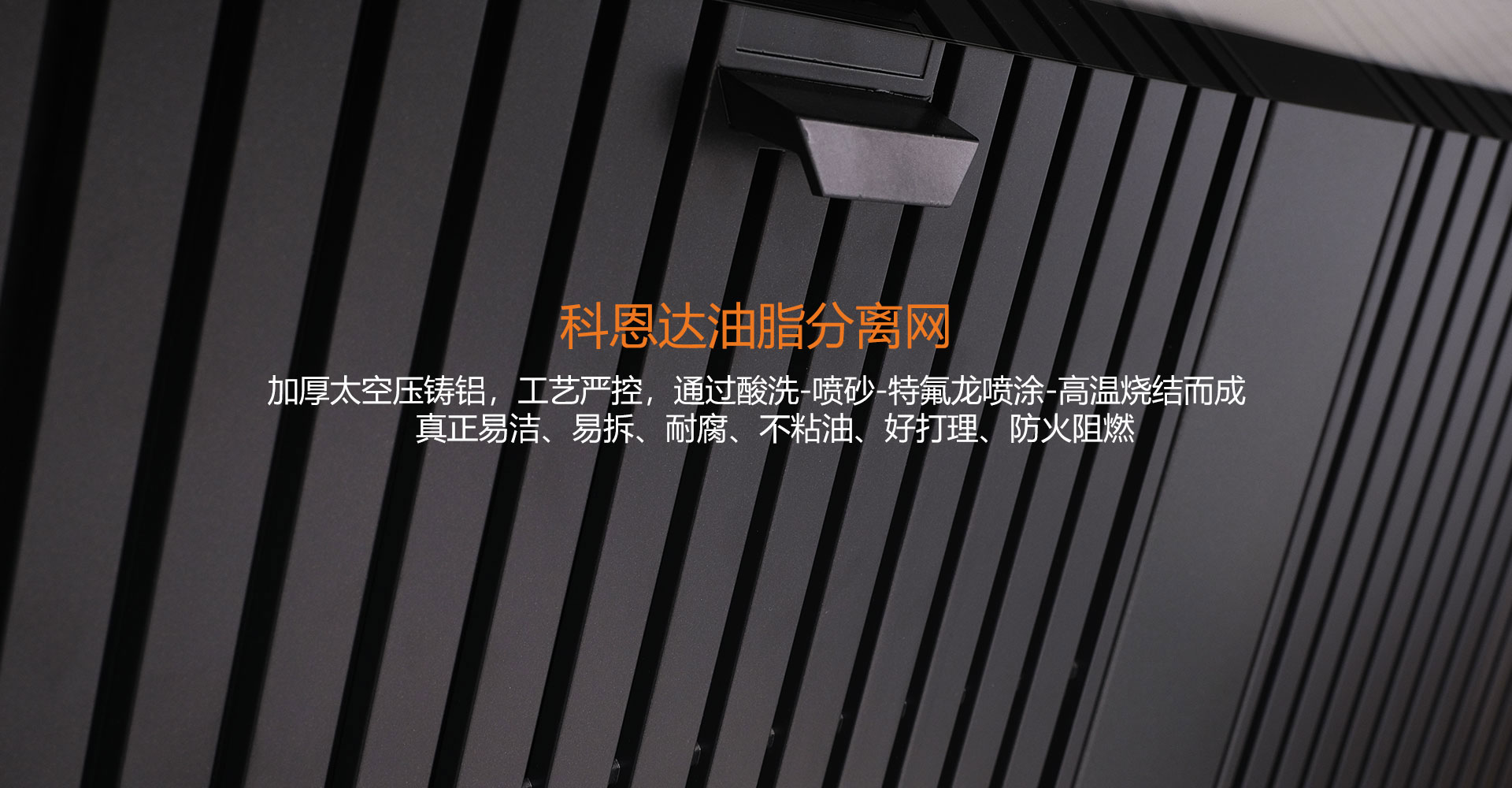 科恩達(dá)三層油脂分離網(wǎng),加厚太空壓鑄鋁,工藝嚴(yán)控,通過酸洗-噴砂-特氟龍噴涂-高溫?zé)Y(jié)而成真正易潔、易拆、耐腐、不粘油、好打理防火阻燃。