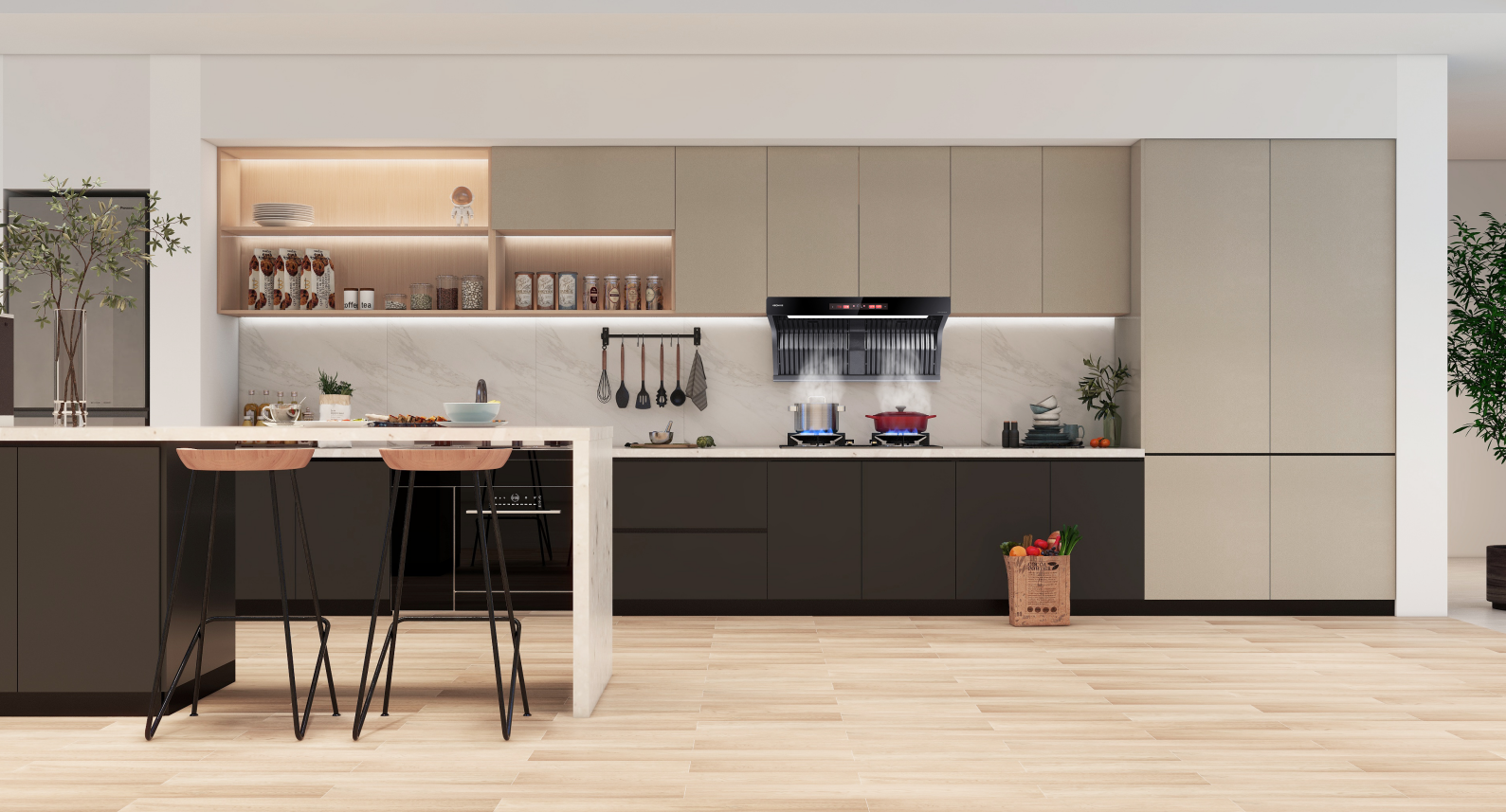 但中式烹飪重油,油煙問題不容忽視,如何改善油煙難題,讓開放式廚房步入千家萬戶。科恩解決中式廚房油煙難題,讓開放式廚房不再是夢(mèng)想。