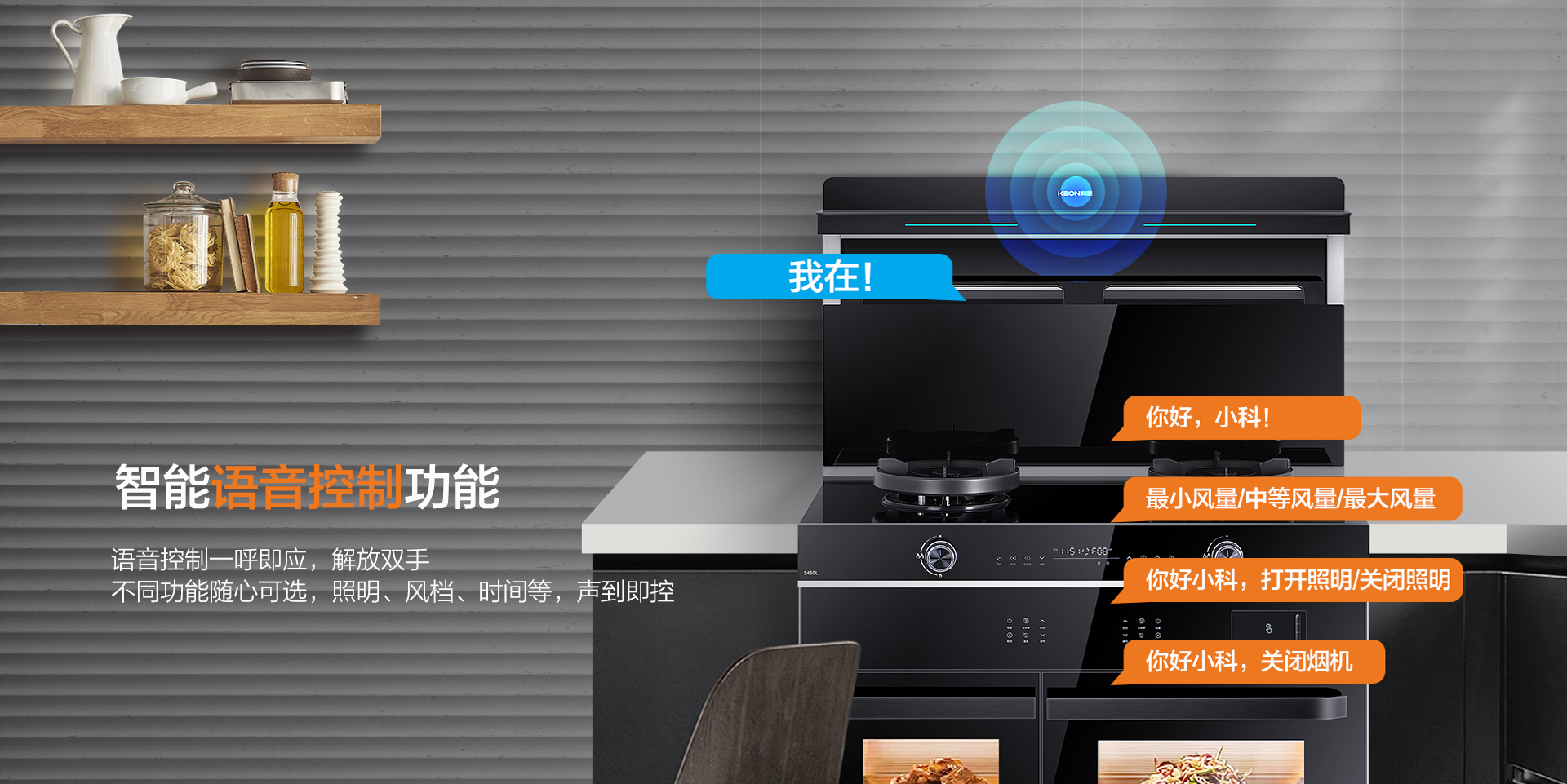 開啟烹飪從一聲“你好,小科!”開始。語音控制一呼即應,解放雙手,不同功能隨心可選,照明、風擋、時間等,開口即可操作。