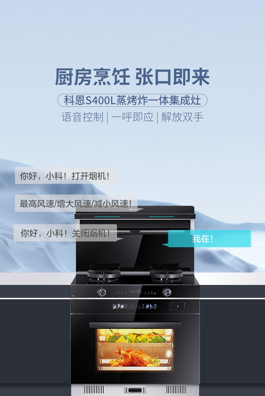 廚房烹飪,張口即來!一句“你好小科”,開啟一天烹飪生活!S400L內(nèi)置語音控制一呼即應(yīng),真正解放雙手。