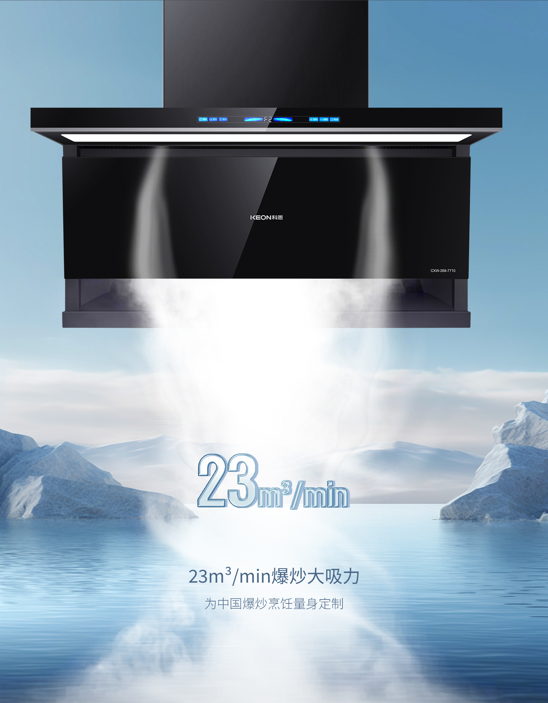 面對中式烹飪中常見的重油爆炒,它也能從容應(yīng)對,23m³/min的強勁吸力如颶風(fēng)過境,瞬間將油煙吸凈,還廚房一片清新。