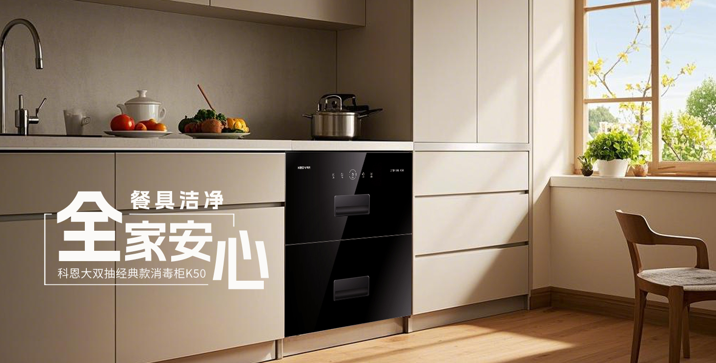 回南天+雨季的雙重暴擊,濕度拉滿(mǎn)警報(bào),剛洗的玻璃杯凝滿(mǎn)水珠,木筷三天冒霉斑,連不銹鋼勺都裹上了一層黏膩。當(dāng)廚房淪為”返潮重災(zāi)區(qū)“,普通消毒柜?治標(biāo)不治本,刀叉縫里的黑斑,奶瓶口的殘留,在你看不見(jiàn)的角落瘋狂繁殖。科恩藍(lán)盾衛(wèi)士系列消毒柜重磅來(lái)襲,K50簡(jiǎn)約款,K51尊享款,K52時(shí)尚款三款消毒柜供你選擇,消烘存三體聯(lián)動(dòng),讓細(xì)菌無(wú)處遁形。