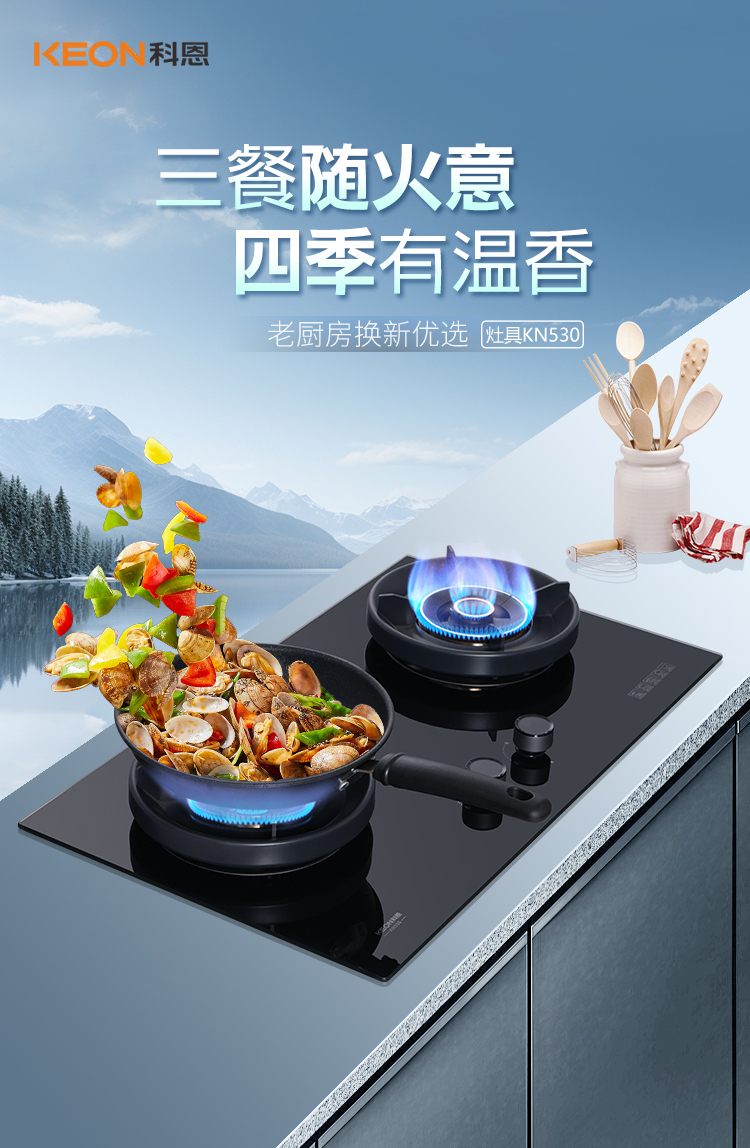 三餐煙火暖,灶間藏日常老舊灶具總在烹飪時添堵火候忽大忽小炒不出脆嫩鍋氣油污難擦,旋鈕發燙科恩全新推出 KN530 灶具以匠心設計破解廚房痛點從老舊灶臺到全新烹飪空間,只需一次換裝,開啟美味新紀元