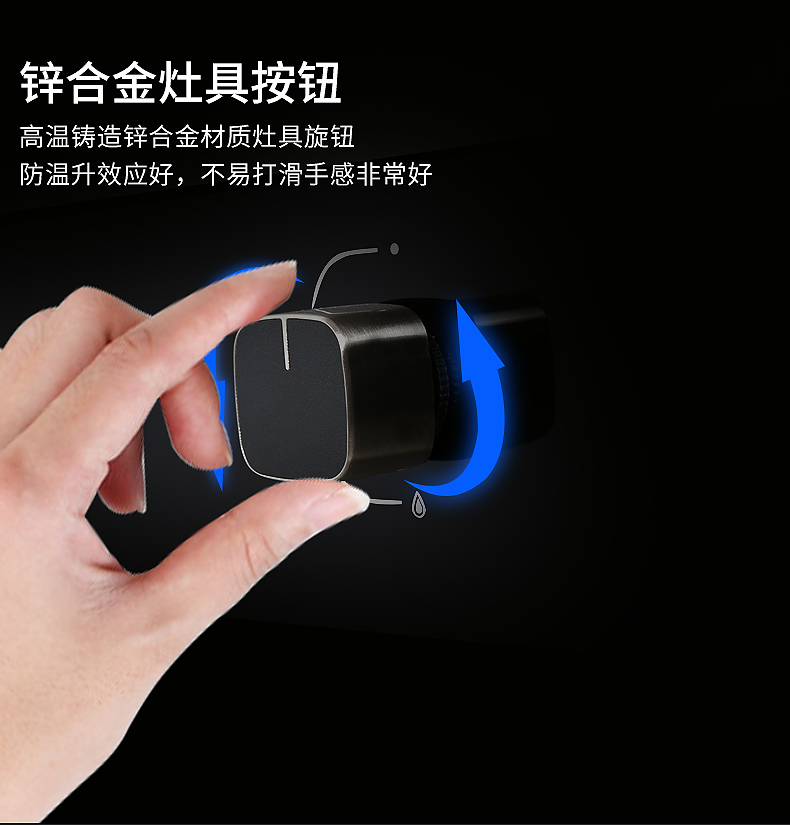 • 鋅合金精鑄材質灶具旋鈕,防溫升效應好,不易打滑手感極佳。
