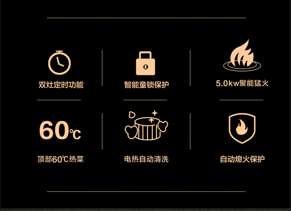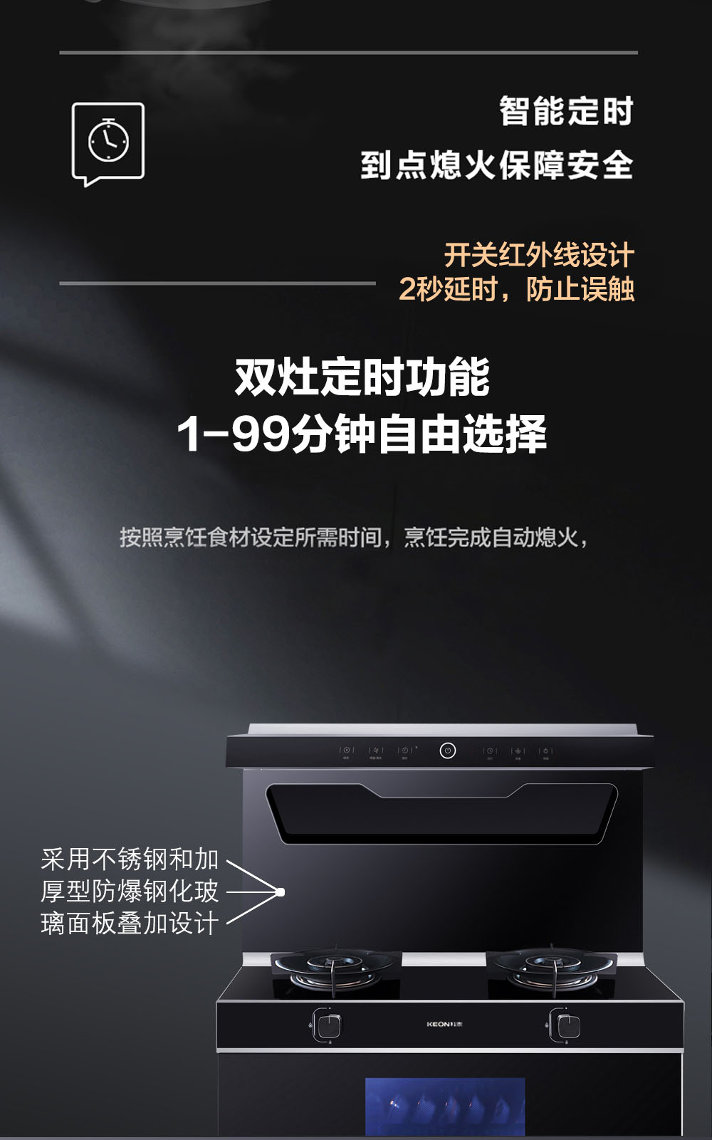 - 頂部60℃保溫置物功能,無油煙置物區(qū),調料罐免受油煙侵擾