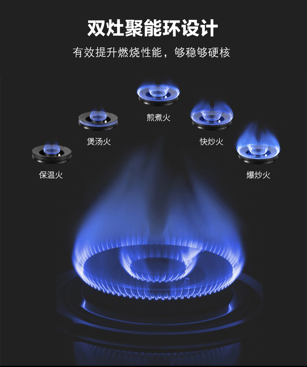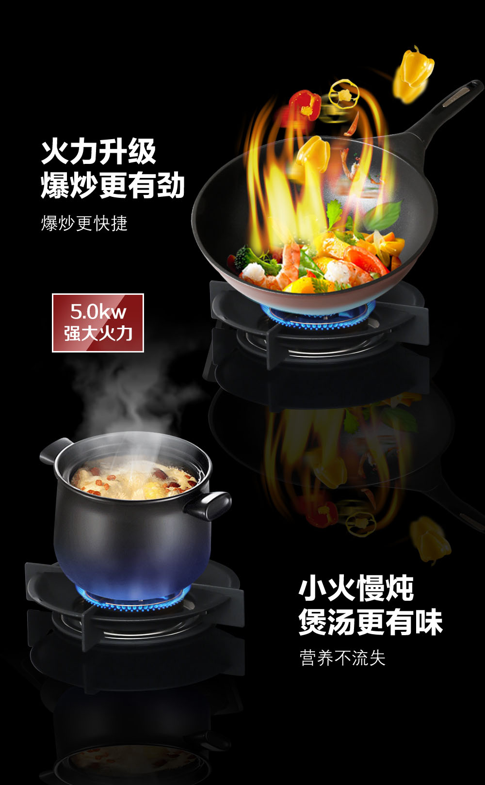 - 5.2KW火候,大火夠猛,小火更穩(wěn),爆炒更舒心