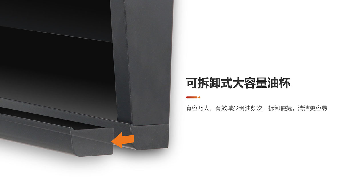 - 可拆卸式大容量油杯,有容乃大,有效減少倒油頻次,拆卸便捷,清潔更容易