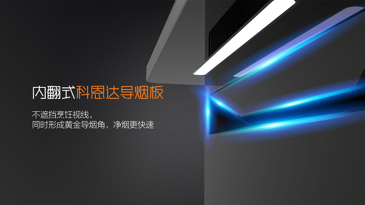 • 一級能效,21.5m3/min寬域近吸攏煙,油煙不過臉,烹飪更隨心