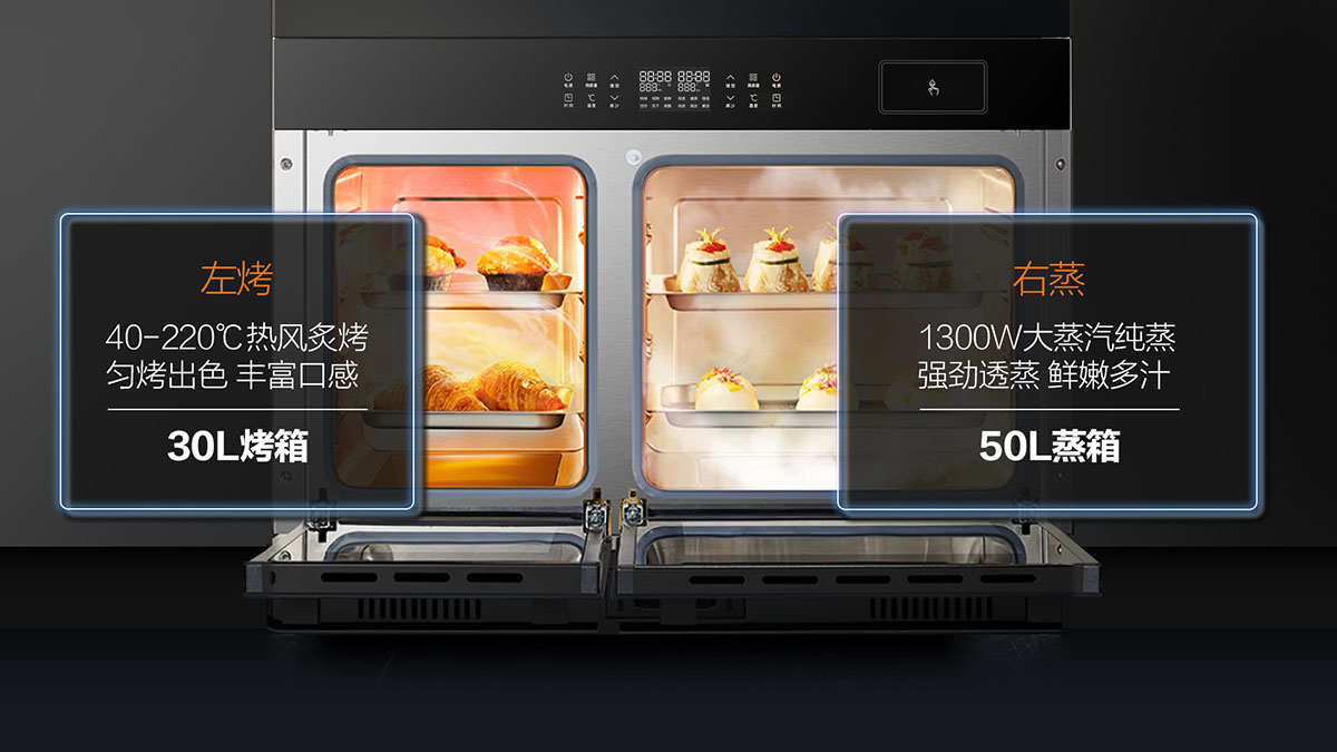 • 蒸烤獨立,高效多元,集成烹飪,樂享智慧廚房