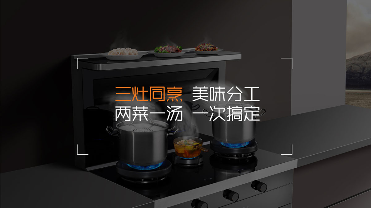 • 三灶同烹,5.0kW猛火爆炒+1.6kW文火慢燉,高效全能,美味加速