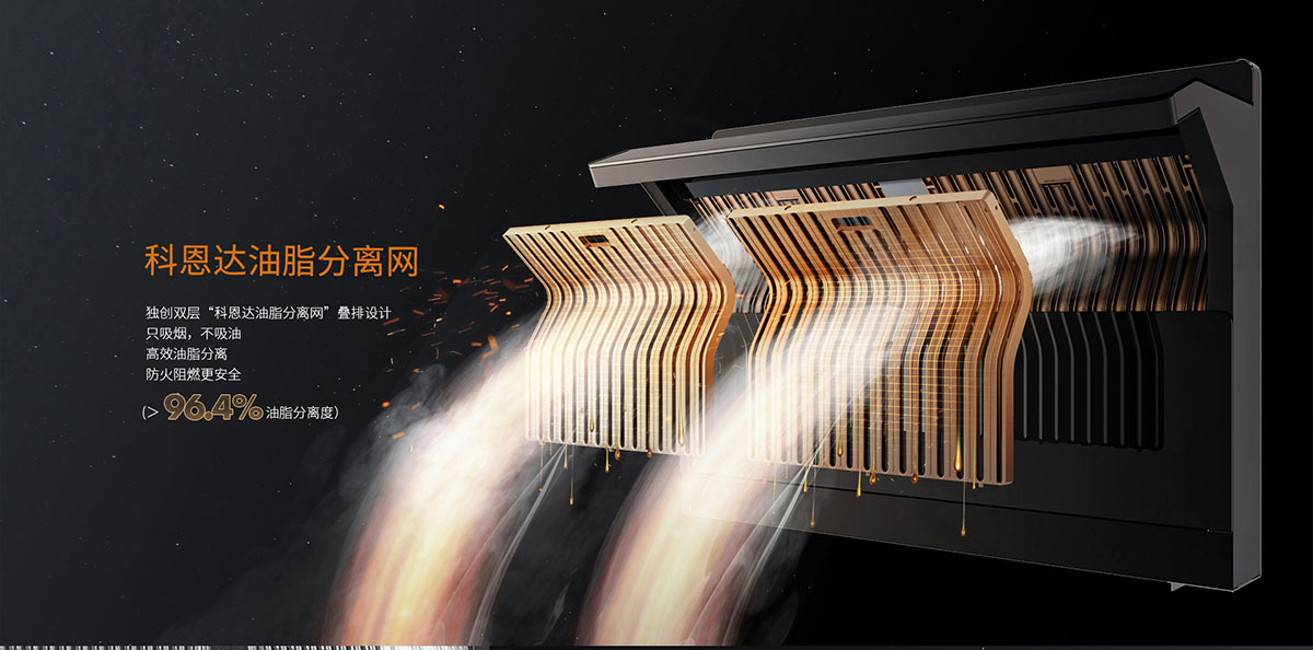 科恩達油脂分離網,加厚太空壓鑄鋁,易潔易拆、防火阻燃