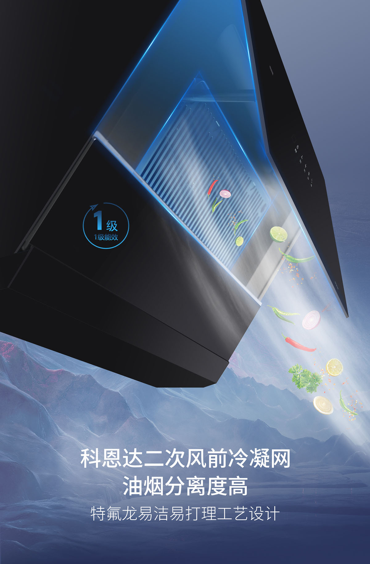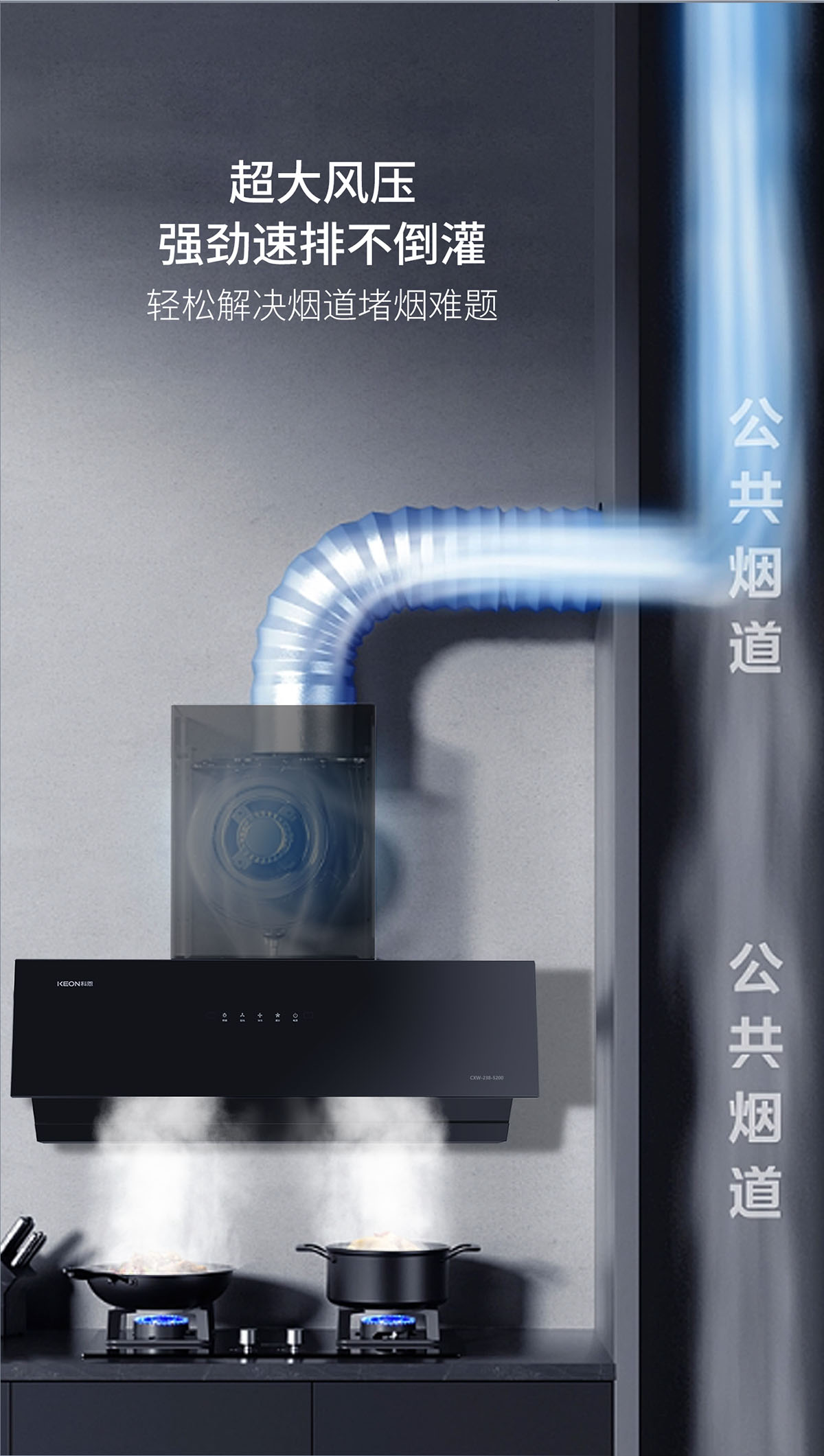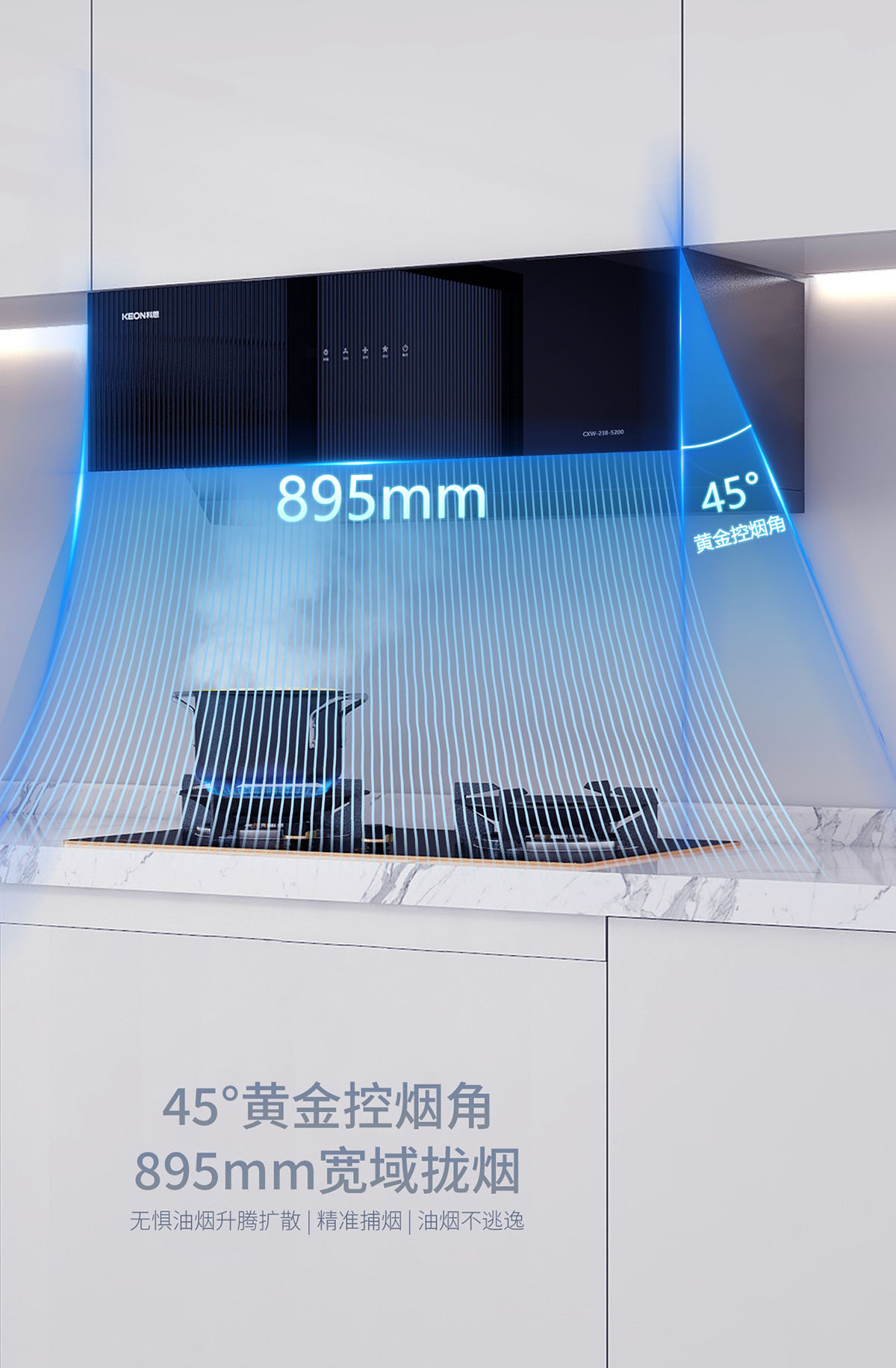 - 23m³/min颶風(fēng)吸力,瞬吸油煙,打造無煙廚房
