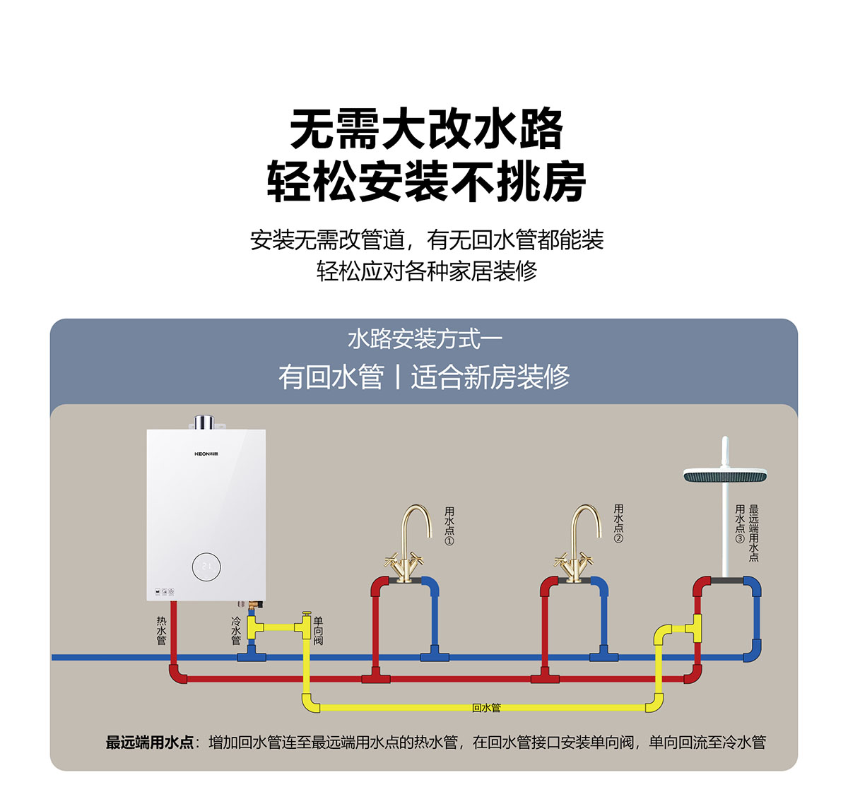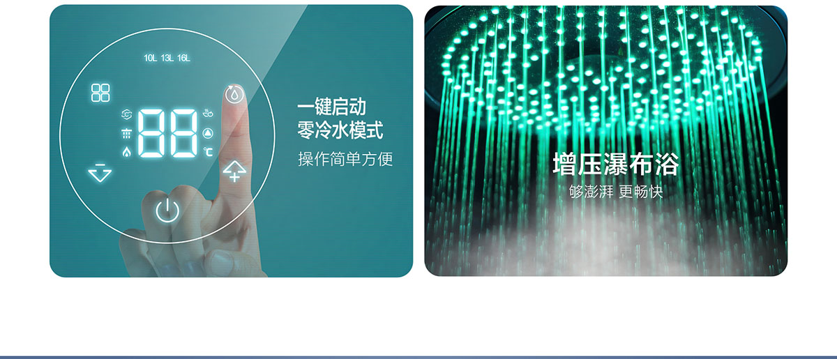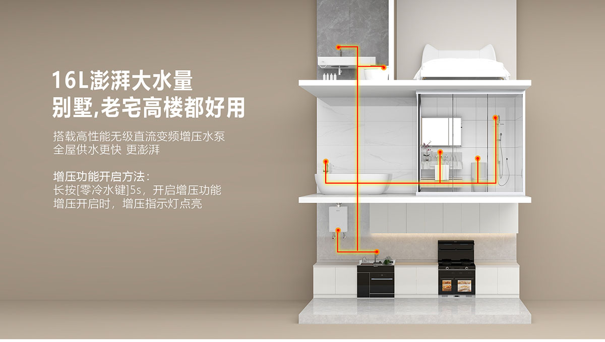 • 采⽤分段燃燒技術,⽔溫調節范圍更廣,速度更快