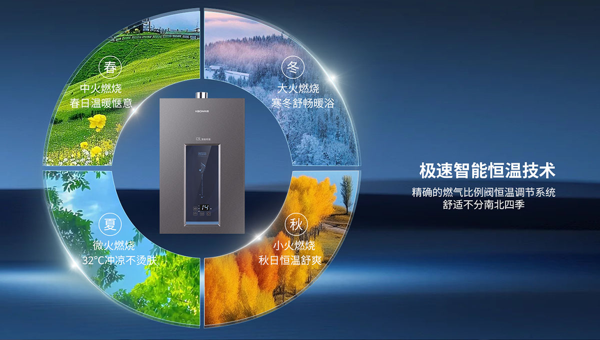 - 極速智能恒溫技術,精確的燃氣比例閥恒溫調(diào)節(jié)系統(tǒng)。