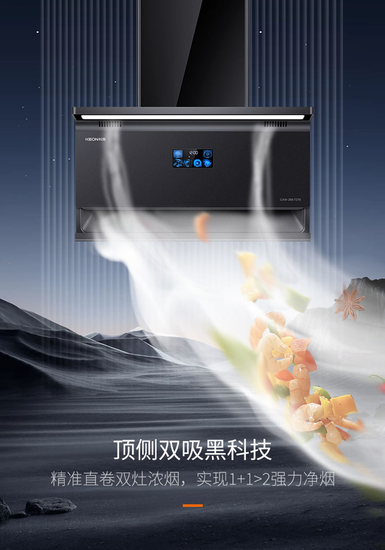 895×468mm超寬屏攏煙,覆蓋雙灶不跑煙