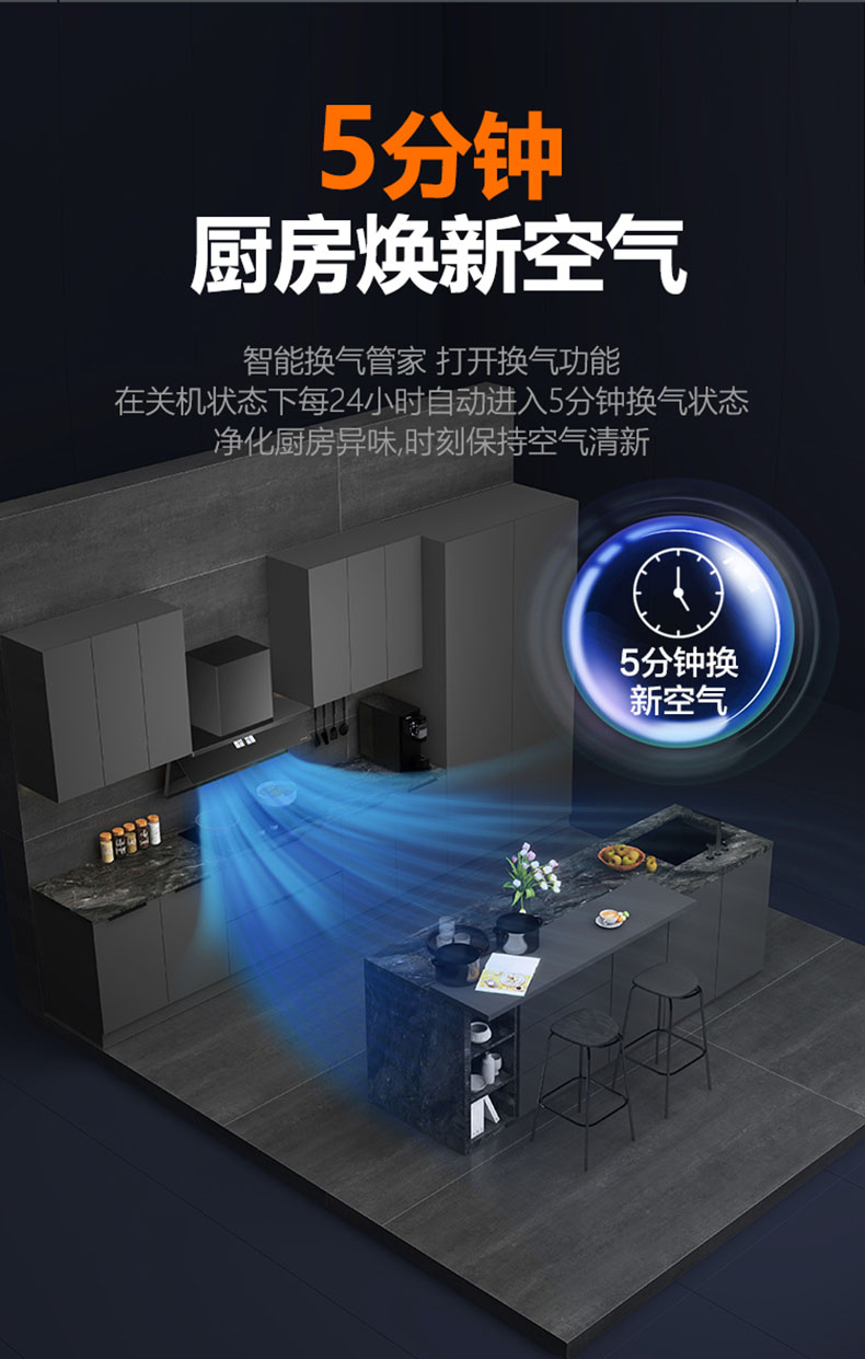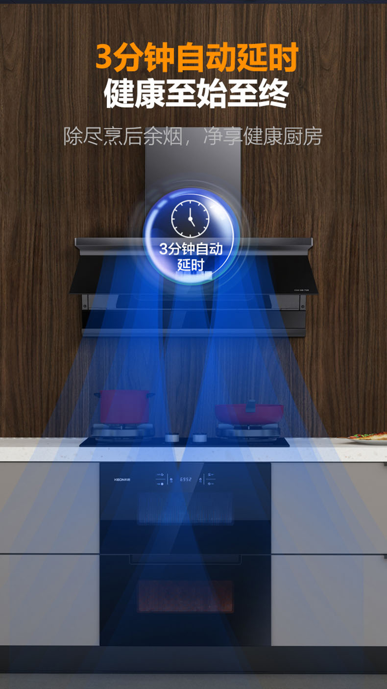 健康至始至終,3分鐘自動(dòng)延時(shí),除盡烹后余煙