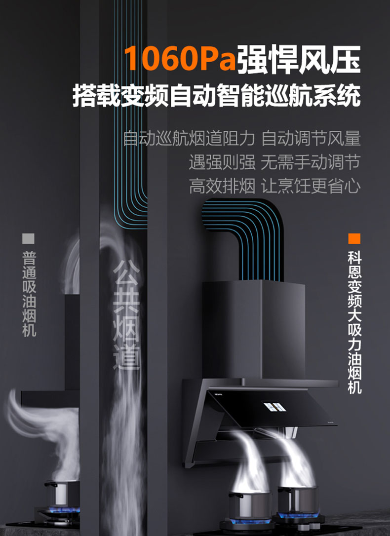 1060Pa強(qiáng)風(fēng)壓,高峰期烹飪排煙暢行無阻