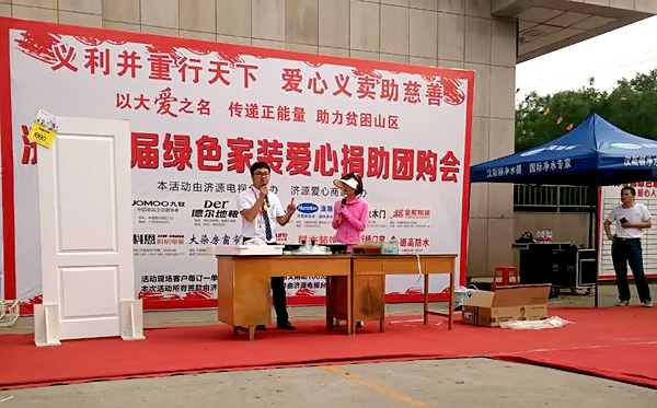 “義利并重行天下,愛心義賣助慈善”,7月2日,濟(jì)源首屆綠色家裝愛心捐助團(tuán)購會在河南濟(jì)源市電視臺隆重舉辦,現(xiàn)場參展品牌以家居建材為主,產(chǎn)品齊全,所有所需用品一站式購齊,省時(shí)、省力、省心、省錢。